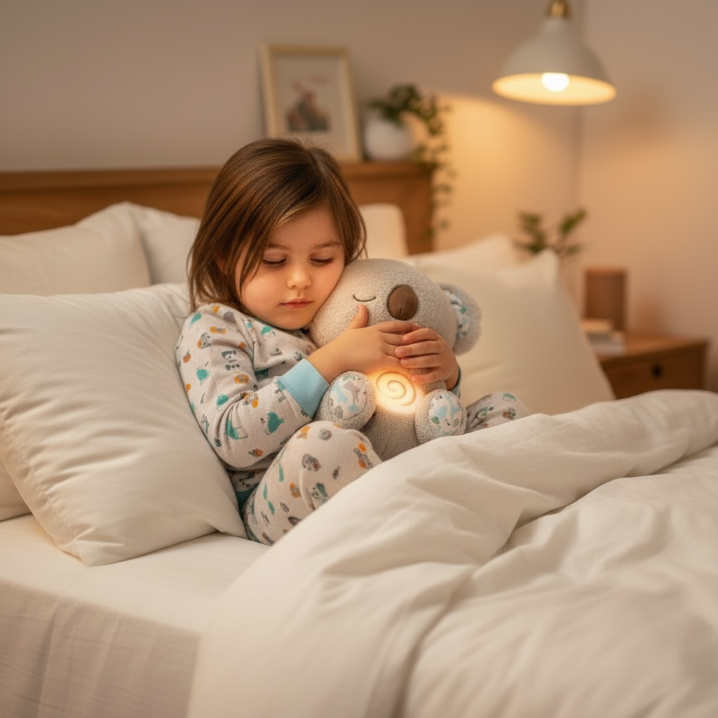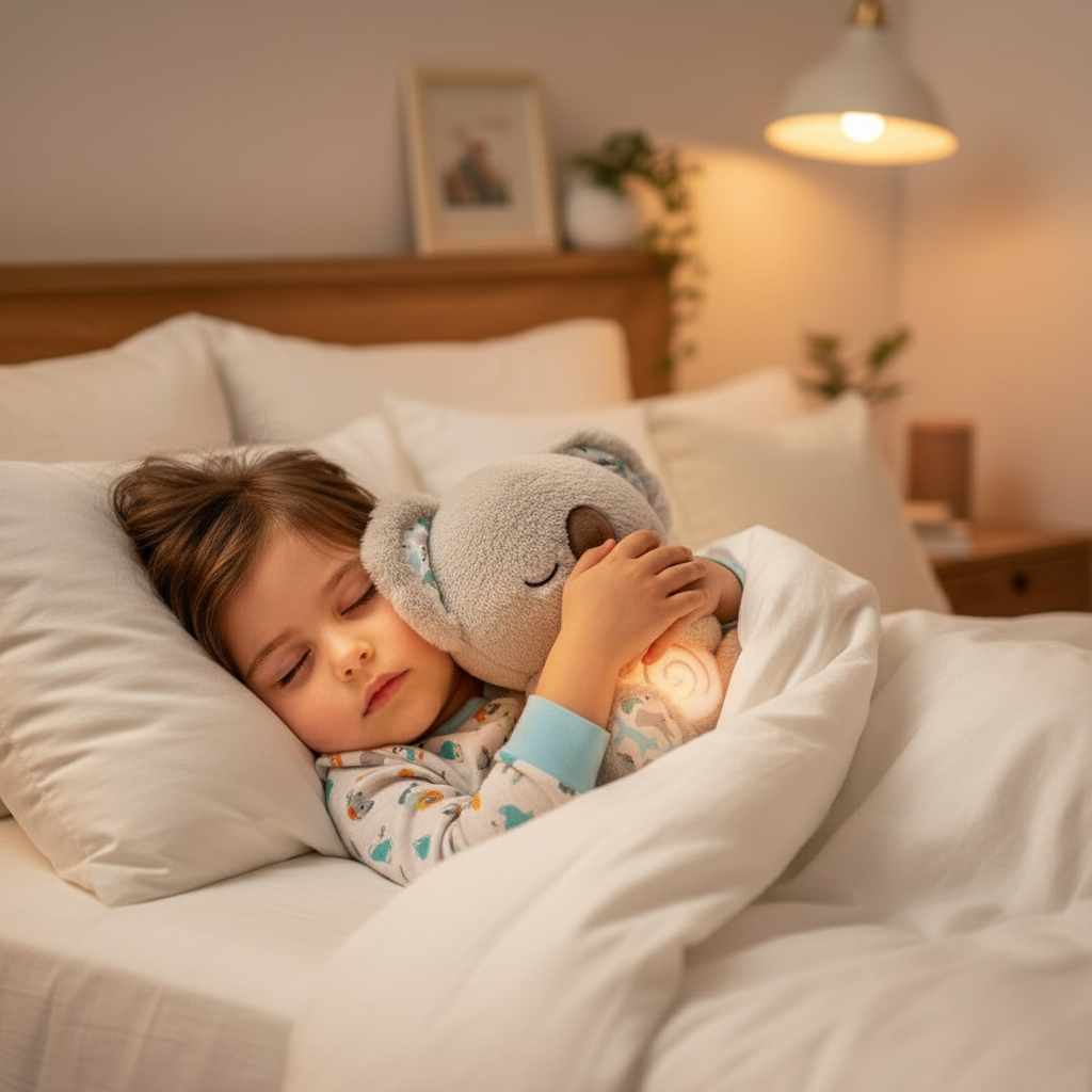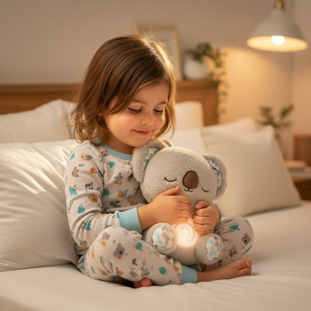 Copilul tău se trezește speriat noaptea? Koala-ul respiră lent, ca o prezență familiară și sigură. Îl ajută să adoarmă mai ușor și să se simtă protejat.